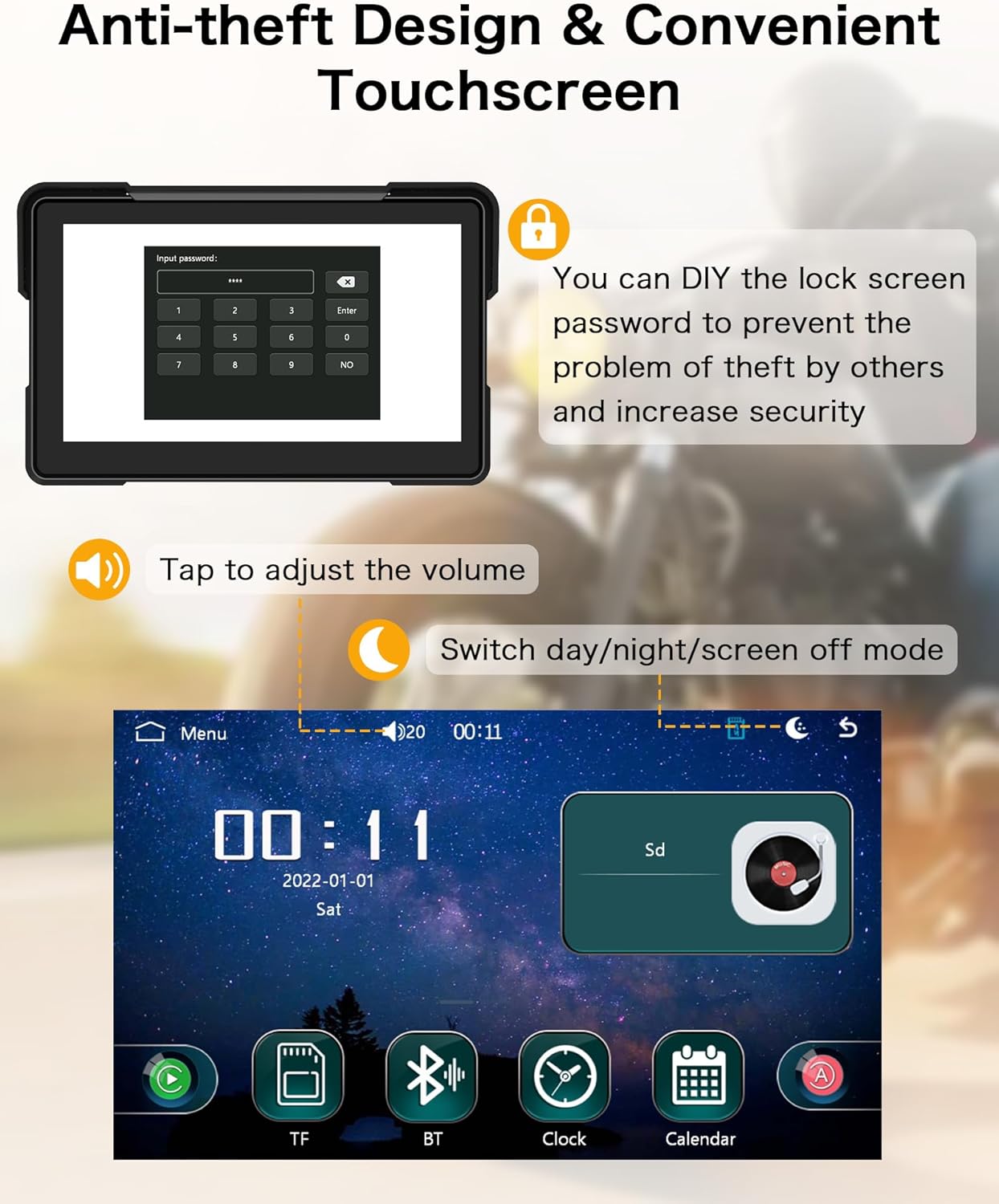 Dal punto di vista del design, il sistema è dotato di un design anti-furto, che include una password di protezione dello schermo, così da garantire una maggiore sicurezza mentre si guida. Questo punto è particolarmente apprezzabile per chi parcheggia la moto in zone poco sicure.