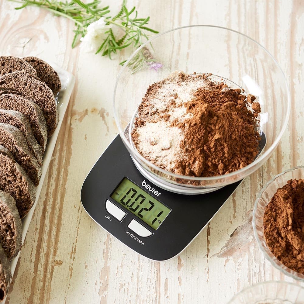 What Makes Beurer KS 25 Digital Kitchen Scales with 1.2 Litre Bowl, Weighing Function with Tare, 1 g Graduation, Conversion in kg, g, lb, oz. Maximum Weight Capacity of 3 kg Special?
