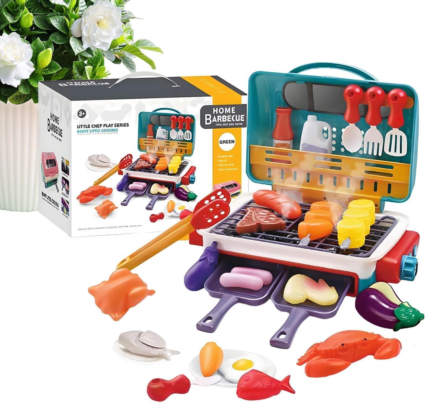 Childrens Barbecue Toy Set – Play Grill Kitchen Set for | Interactive Cooking Station with Utensils and Fake Food, Educational Pretend Play Gift for Indoor and Outdoor Activities