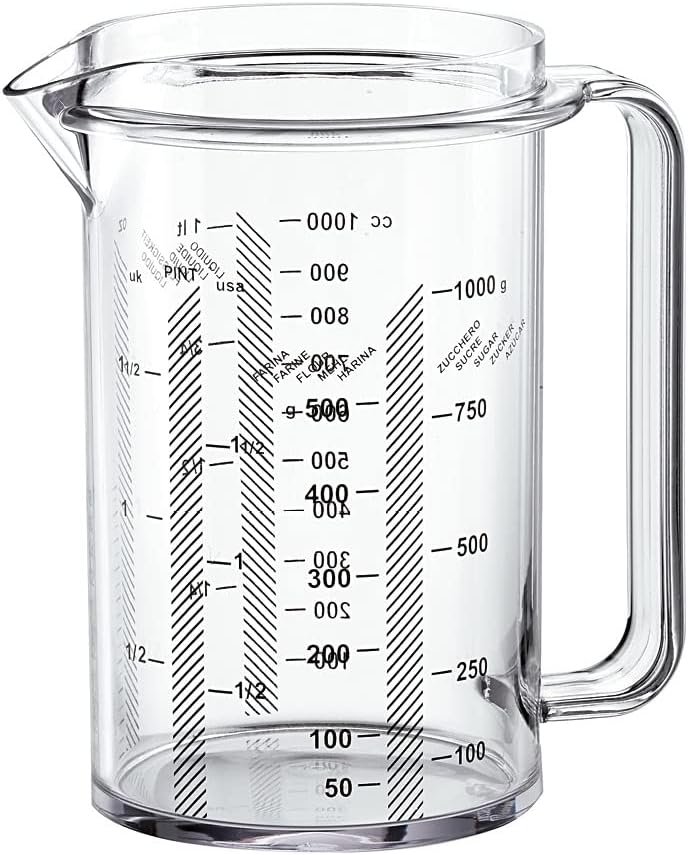 1. Versatility: With its graduated scale for both solid and liquid measures, this jug is perfect for a range of tasks.
