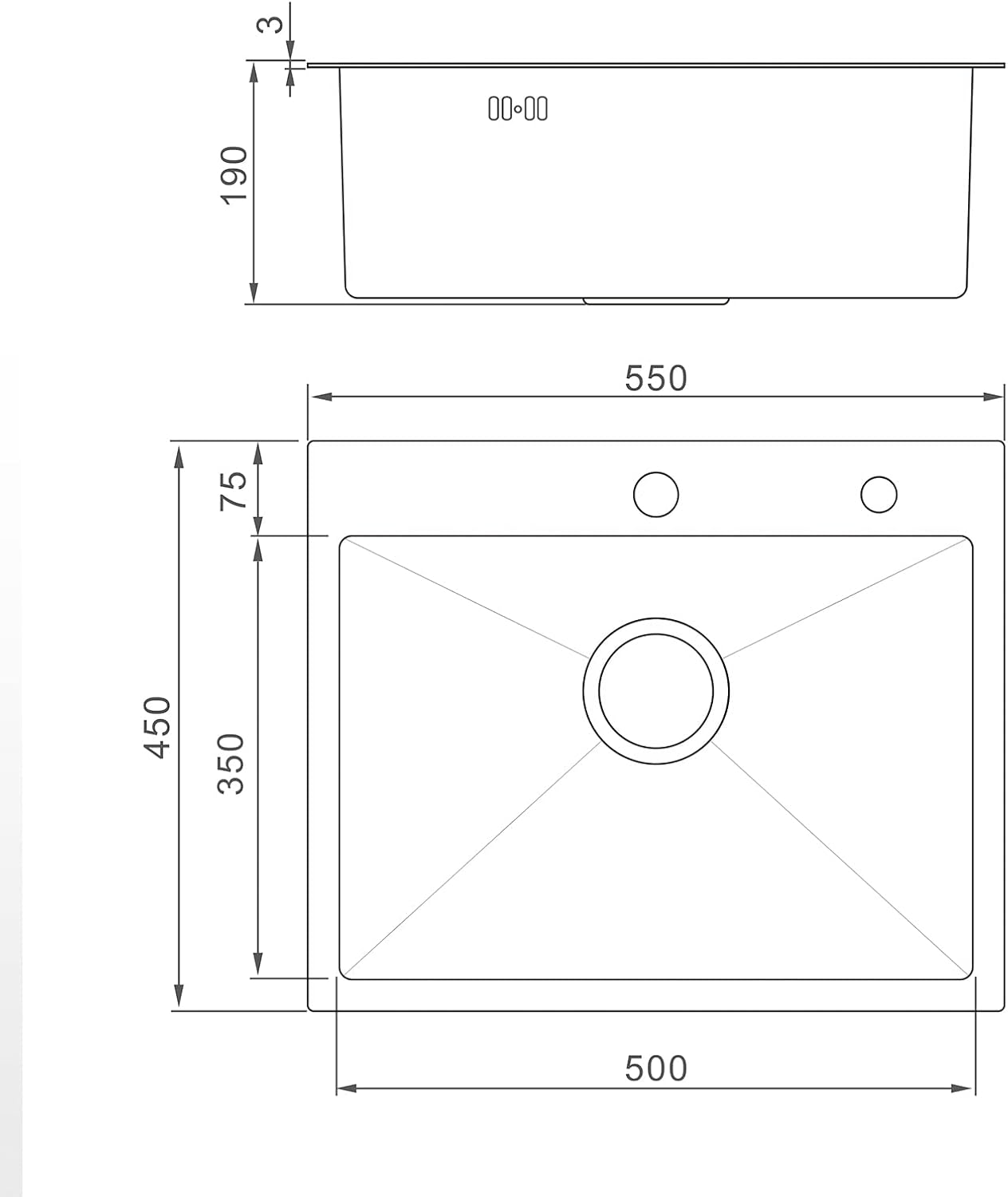 Two Holes for Convenience: This sink features two pre-drilled holes—one for a standard 35 mm faucet and another for a soap dispenser—adding convenience and versatility to your kitchen setup.