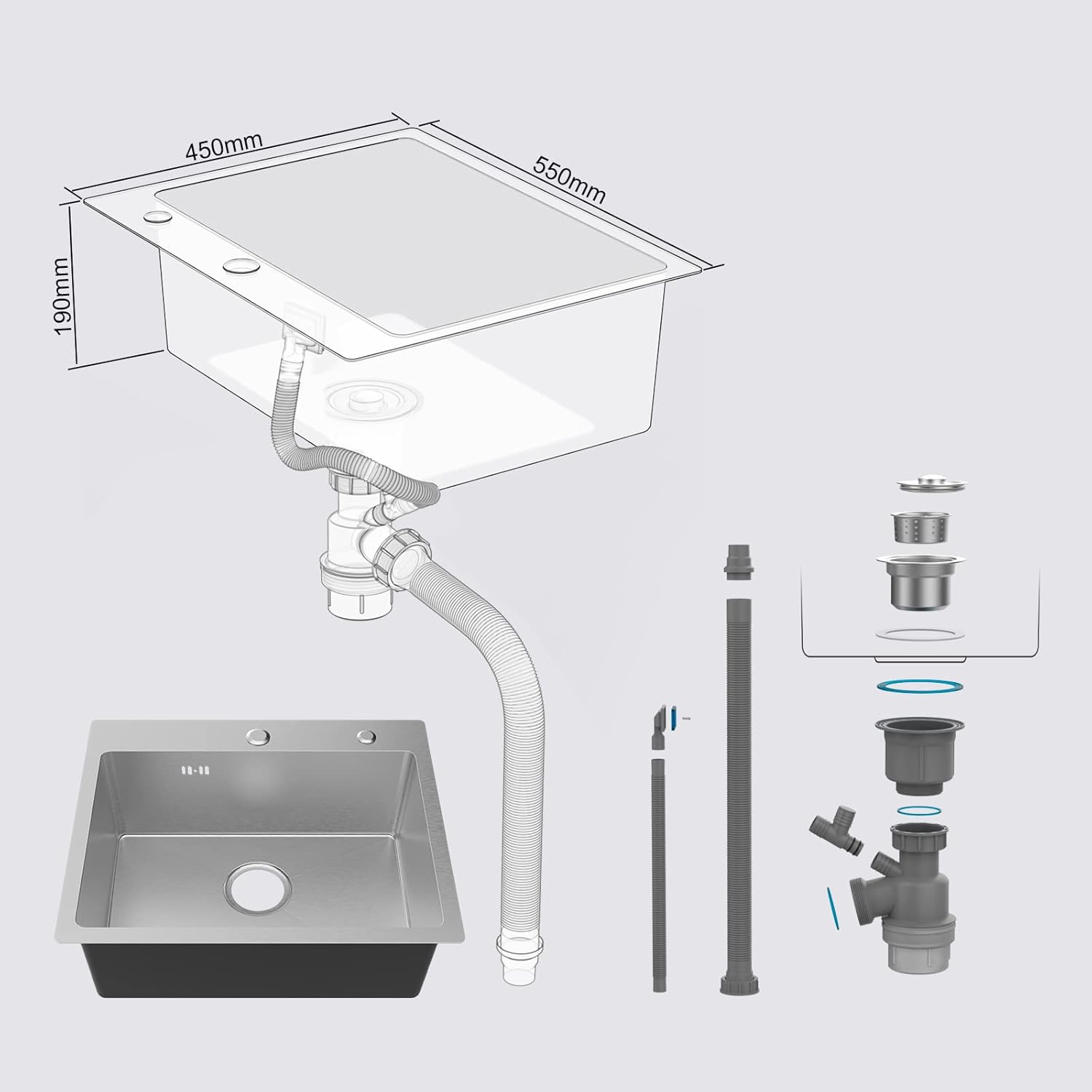 Material and Durability: Constructed from 304 stainless steel, this sink is designed to withstand the rigors of daily kitchen use. The material is known for its resilience against scratches and rust, promising a long-lasting product.