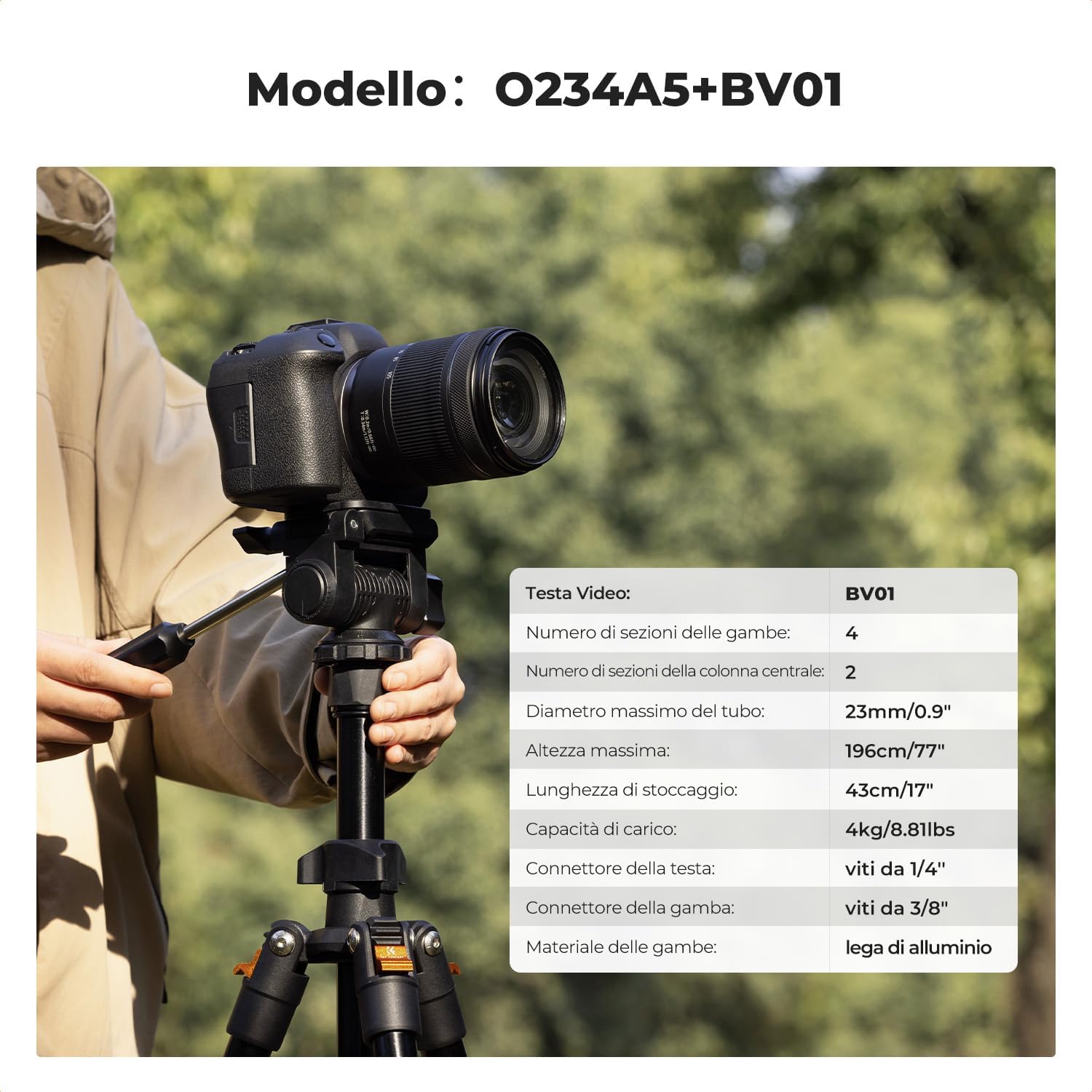 • Versatile Shoot Options: The BV01 video head allows for a full range of motion.
