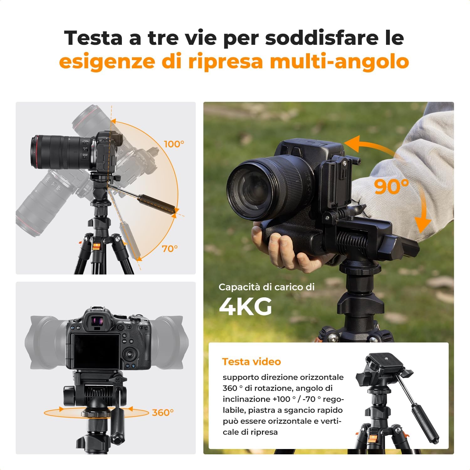 The 3-way head allows you to rotate the tripod smoothly in both horizontal and vertical directions. For photographers, this means having full control over your composition. The panoramic rotation is perfect for landscape and panoramic photography, while the ability to tilt the camera effectively makes it suitable for portrait work as well.