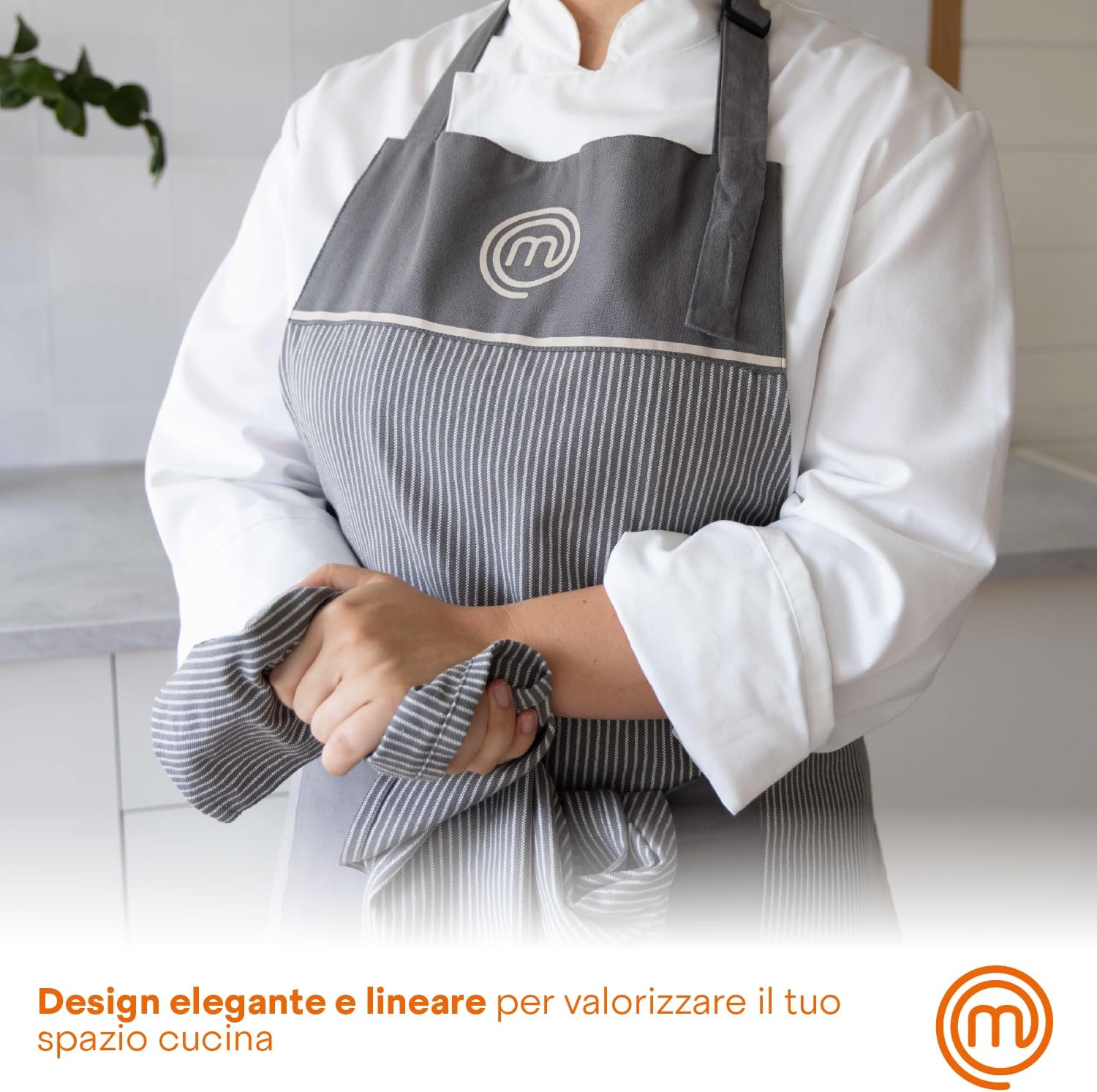 Stylish Design: Featuring a contemporary, chic look, the MasterChef apron includes details that make it visually appealing. The elegant styling works both in professional kitchens and at home, allowing wearers to express their personal style while cooking.